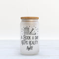 A Book a Day Keeps Reality Away Frosted Glass Can Tumbler